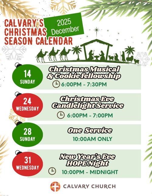 Calvary Church is a place where people can meet Jesus, engage in life-giving community, and everyone is welcome. We believe in creating a space where people can have authentic encounters with Christ, discover their gifts and use them for God's glory. Join us for our Sunday services!